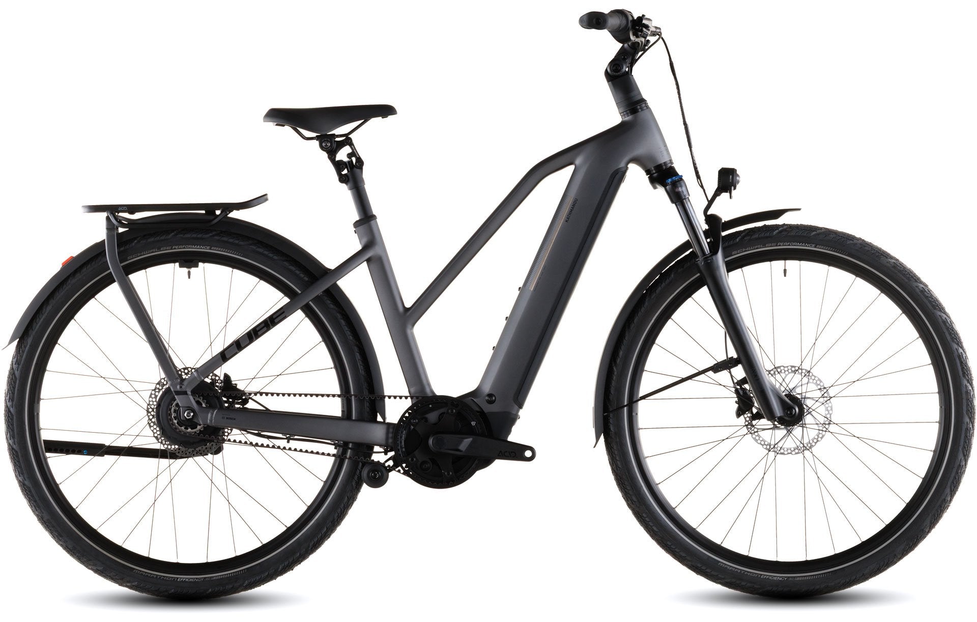 Le cadre Easy Entry du Kathmandu Hybrid est conçu pour tenir ses promesses, rendant le cyclisme aventureux aussi accessible et simple que possible. Le moteur Bosch CX soigneusement intégré et la batterie PowerTube de 800 Wh ne sont qu'un début. La géométrie Effcient Comfort est conçue autour d'une fourche suspendue avec un débattement de 100 mm, pour un meilleur contrôle même lorsque les conditions deviennent difficiles. Les câbles intégrés complètent les lignes épurées du cadre et contribuent à réduire le besoin de maintenance, sans oublier la patte UDH robuste, polyvalente et évolutive. Et bien sûr, il y a un support de garde-chaîne intégré et notre Integrated Carrier 3.0 résistant, robuste et exceptionnellement soigné, pour que vous puissiez transporter tout ce dont vous avez besoin pour vos aventures.